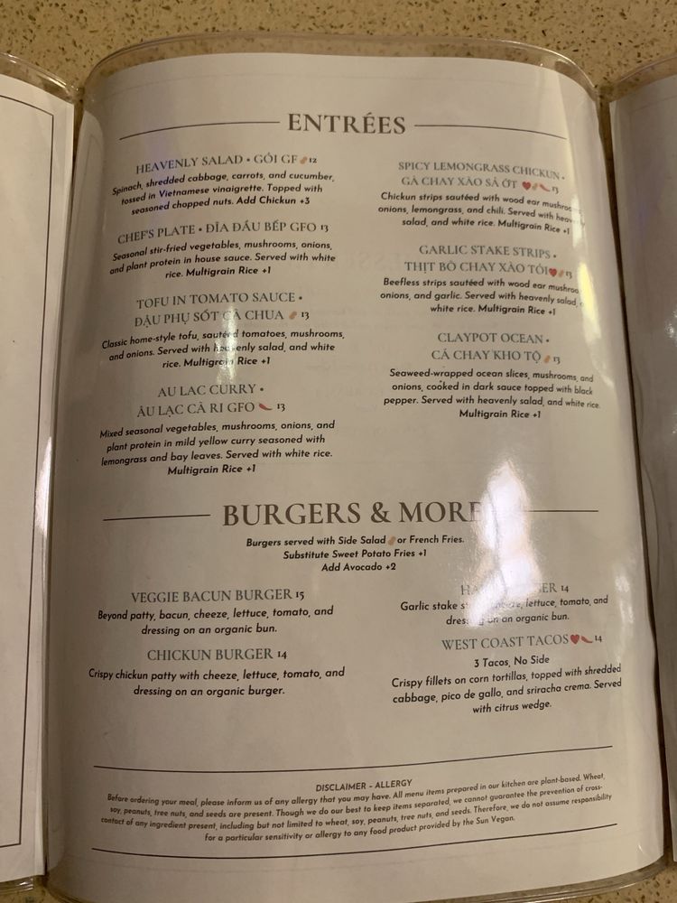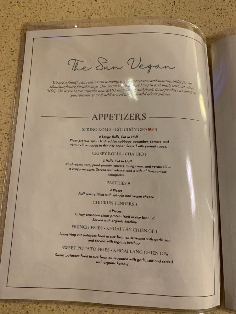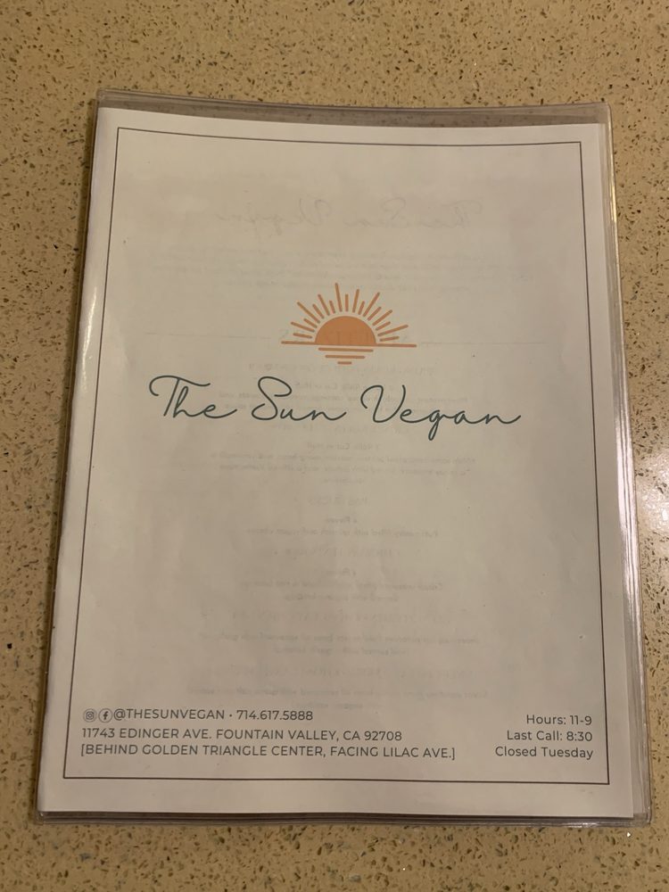 Introducing The Sun Vegan, a Vietnamese vegetarian and vegan restaurant in Fountain Valley, CA. This hidden gem offers a unique dining experience with a menu filled with flavorful and nourishing dishes. From crispy rolls to royal pho soup, every item is thoughtfully prepared and bursting with authentic Vietnamese flavors. The friendly staff welcomes you warmly, creating a relaxed and inviting ambiance. The use of plant-based proteins and fresh veggies in their dishes ensures a satisfying and healthy meal. The innovative and creative vegan options like Thai banana egg roll and vegan tacos are a must-try. The extensive menu caters to all, whether you're a vegan enthusiast or simply seeking a culinary adventure. Treat yourself to a delightful meal at The Sun Vegan and discover the essence of delicious vegan cuisine.